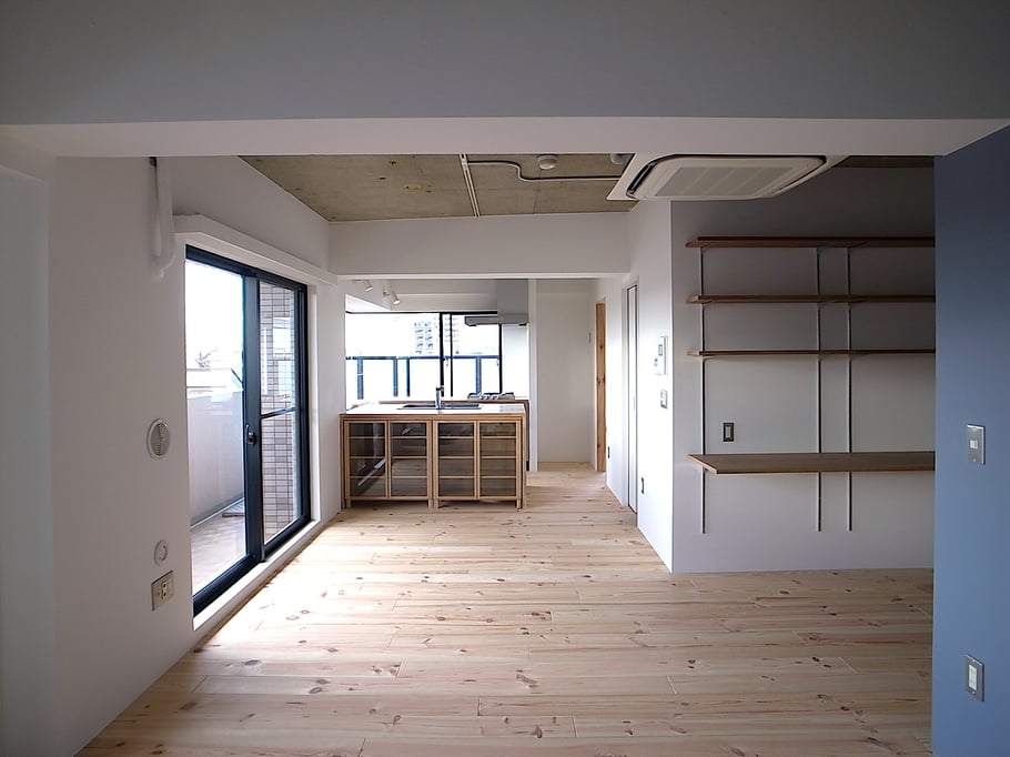 広いバルコニーが魅力的なマンションのフルリノベーション 。