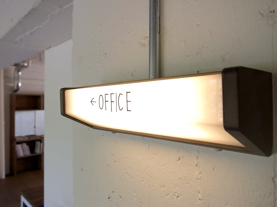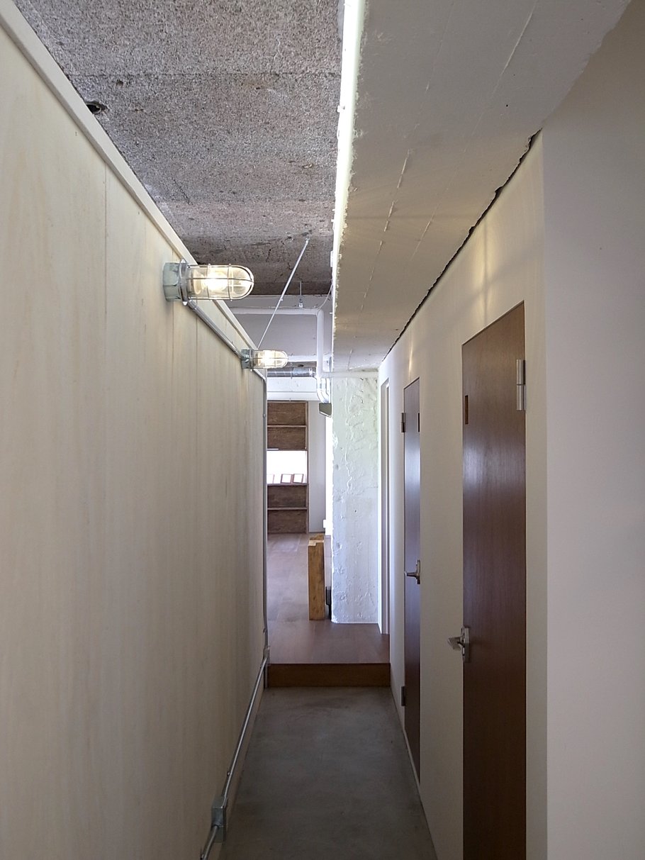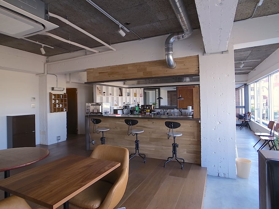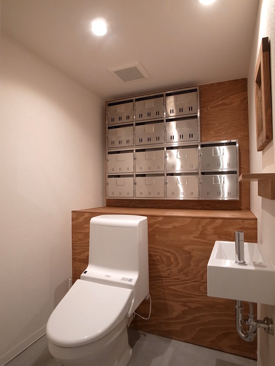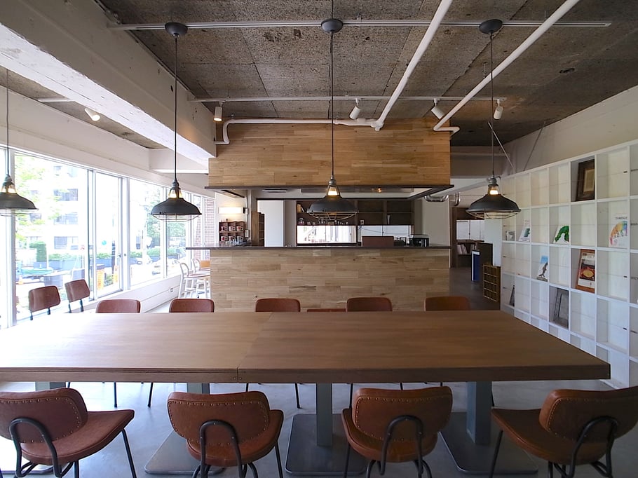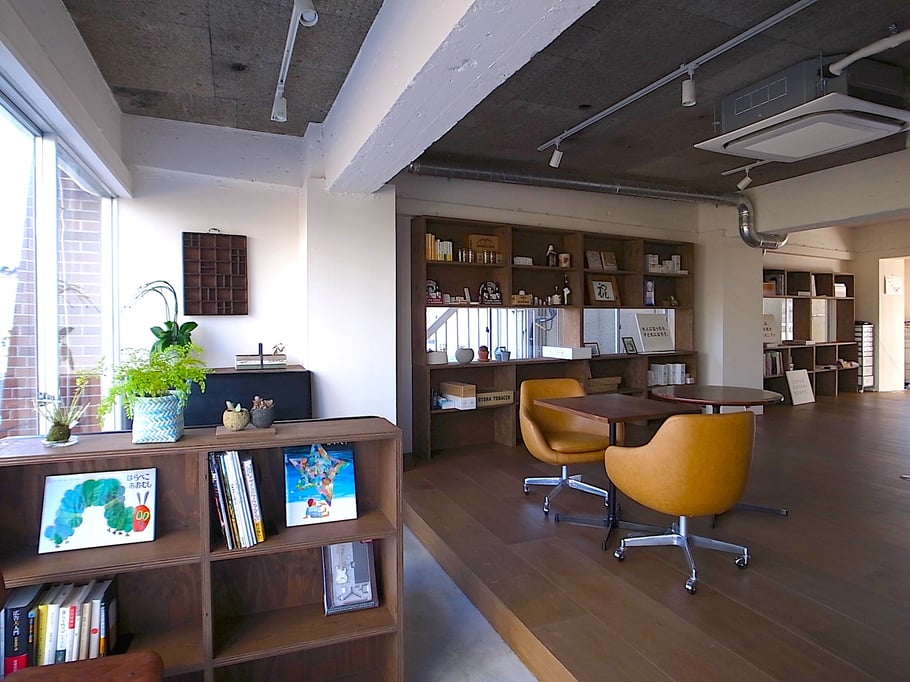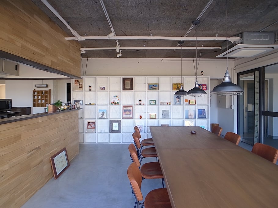「美味しいコーヒーの飲めるオフィス」をテーマに隅に追いやられがちな給湯室をオフィスの中心にオープンキッチンとしてデザイン。このキッチンを境に打ち合わせスペースと執務スペースをゆるやかにゾーン分けしている。キッチンに立つスタッフの姿も風景の一部になり、打ち合わせの場の空気感も和らいでいる。またトイレの収納に公団用のポストを用いたり、随所に手書きサインをちりばめたりと遊び心もある雰囲気のいいオフィスである。